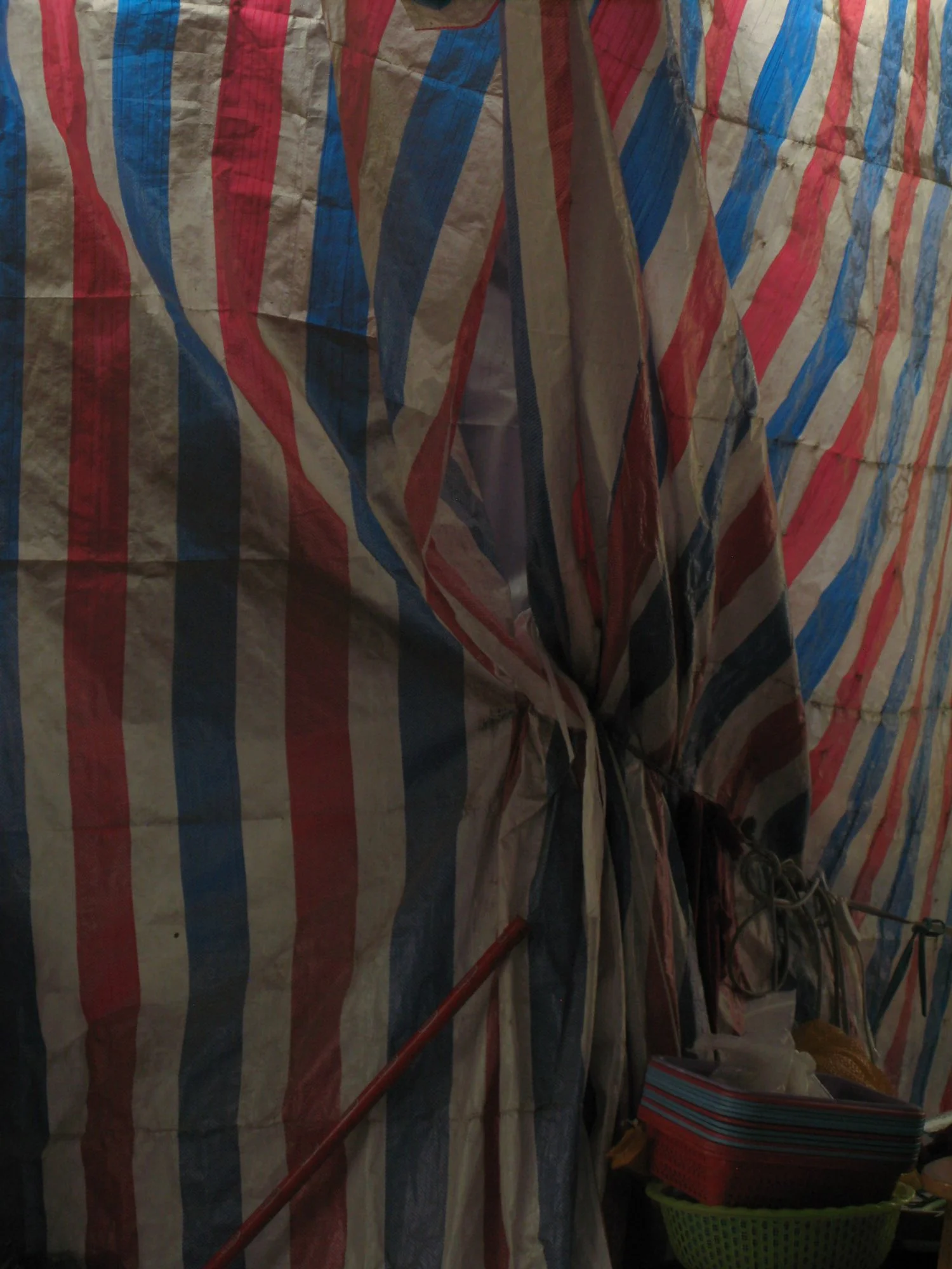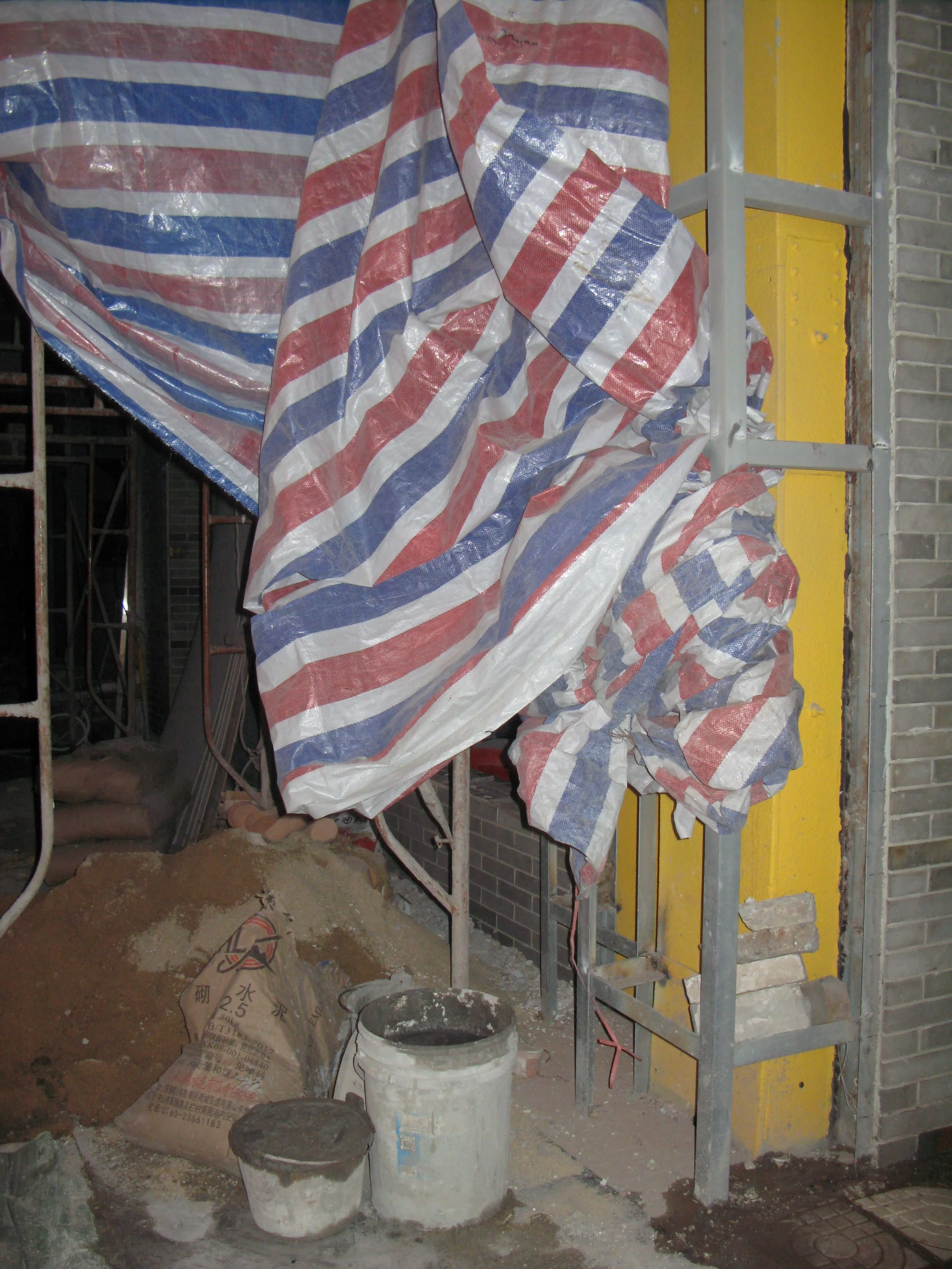 On my recent trips to China, I began photographing how this fabric persists, across different cities– morphing into the city infrastructure, protecting belongings, or simply becoming the backdrop of a heaving scene. At times, it mutates into a behemoth that swallows what lies beneath it and other times it camouflages, barely noticeable, and recedes amongst scattered rubble.